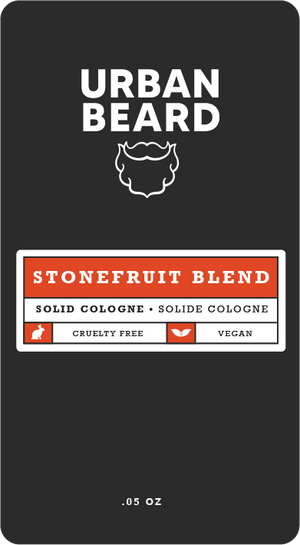 Description: The Stonefruit Blend brings a blend of bourbon, cognac and black satin which results in a woody, sweet yet spicy blend. Think a tart orange shaken like the martini's James Bond orders - sophisticated and bold. Our Solid Colognes are a fresh alternative to the typical alcohol based colognes that can leave you with a stinging or burning sensation after application. Our Urban Beard solid colognes are designed to be complimentary to a man's natural body fragrance. We use a non-greasy, hypoallergenic, and absorbent base of Euphorbia Cerifera (Candelilla) Wax.